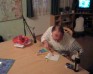 Als der Weihnachtsmann, in Form von Matthias auftauchte, waren alle sehr hektisch. "Wo war nochmal der Zettel mit meinem Kulturbeitrag???" Ohne kulturelles Engagement in Form von Erzählungen, Gedichten, weihnachtlichen Gesängen (Karaoke) etc. gibt's nämlich kein Geschenk! Durch Leibesertüchtigungen, atemberaubende Spagate und zahlreichen Liegestütze lässt er sich aber auch erweichen!