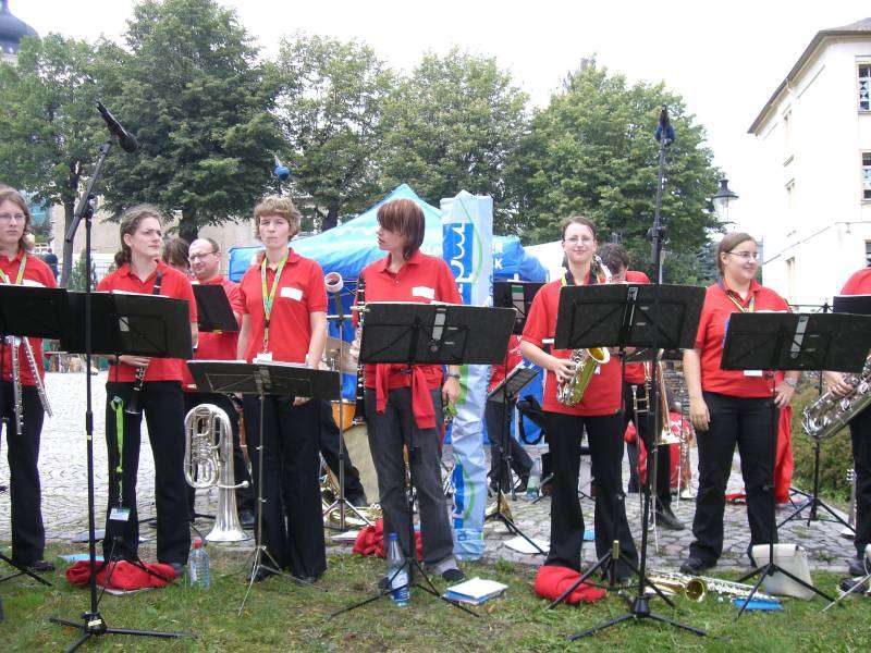 | Und jährlich grüßt der MDR - Auch an diesem Tag der Sachsen (in Marienberg) durften wir die Live-Übertragung des Festumzugs des MDR musikalisch begleiten. |